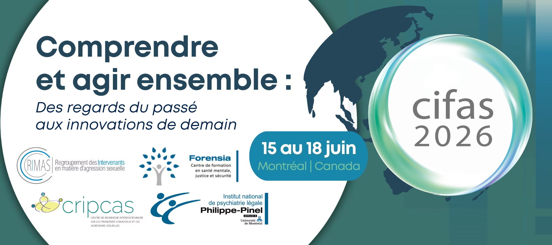 Le Regroupement des intervenants en matière d'agression sexuelle, le Centre de recherche interdisciplinaire sur les problèmes conjugaux et les agressions sexuelles, et l’Institut national de psychiatrie légale Philippe-Pinel sont heureux de vous convier au 25ᵉ anniversaire du Congrès international francophone sur l'agression sexuelle | CIFAS!