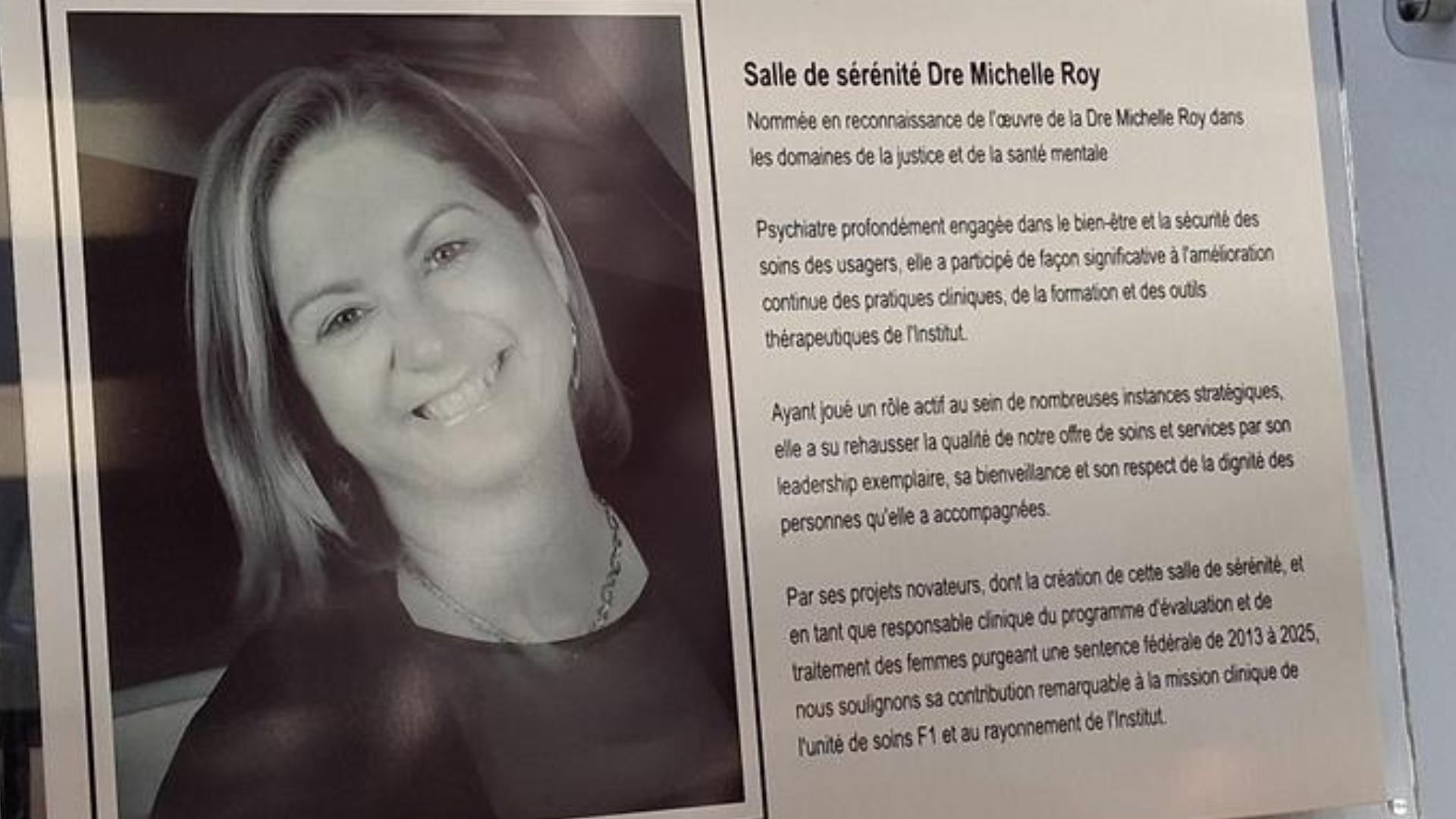 L'Institut est fier de souligner que Dre Michelle Roy, psychiatre légiste au sein de l'établissement, s’est vu décerner une reconnaissance d’envergure : la Mention élogieuse de la Commissaire, l’une des plus hautes distinctions remises par Service correctionnel Canada (SCC).